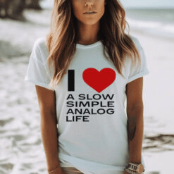 Embrace the simplicity and mindfulness of an analog lifestyle with the “I Love A Slow Simple Analog Life” T-Shirt.